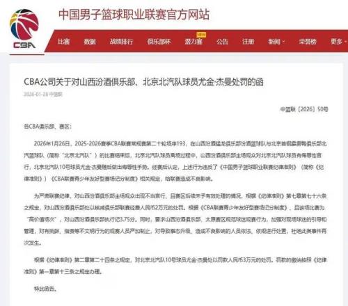 CBA3消息!山西北京遭重罚,辽篮签第六外援,郭艾伦第一阶段报销