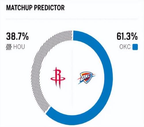 这是两队本赛季的第三次交锋,前两次交手,火箭两战全败,首次是揭幕战,火箭在客场历经双加时以1分之差惜败雷霆,第二战火箭在主场惨败20分。赛前,美媒ESPN对本场比赛进行了胜率预测,火箭队胜率意外仅有38.7% ,而残阵雷霆胜率则高达61.3% ,对比明显。