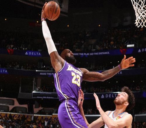进入下半场,杰威率先上篮,八村塁三分回应后,老詹继续造杀伤+喂饼斯玛特,此后老詹继续突破上篮,助攻拉拉威亚再中三分球,湖人一波流追上打停雷霆。暂停回来,老詹继续军训哈腾,拉拉威亚连续强攻罚球,老詹也续上单打,湖人最多领先雷霆8分。后半段杰林连拿8分,又轮到雷霆的罚球回合,节末卡鲁索命中三分球,三节打完,雷霆93-91湖人。决战第四节,斯玛特连续命中三分,卡鲁索内外开花回应,中段里夫斯和艾顿轮流失误,杰威和霍姆格伦继续上分。