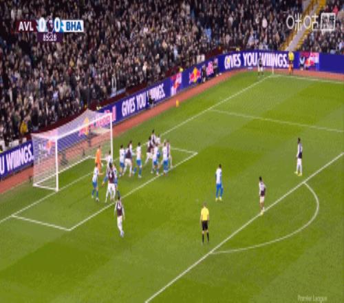 第15分钟,沃特金斯抢点头球攻门,皮球偏出球门