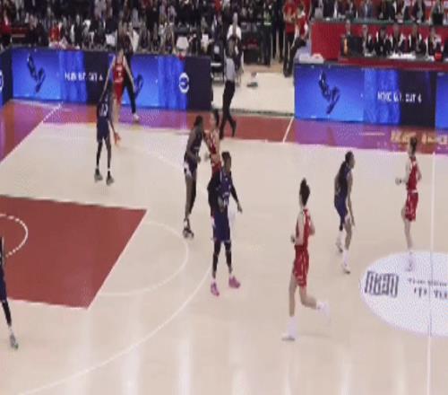 第四节:宫鲁鸣安排张梓涵出战,国家队每一个球员都上场了,而杨舒予的外线手感也找到了,三分命中。中国队103-59,大比分领先。