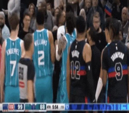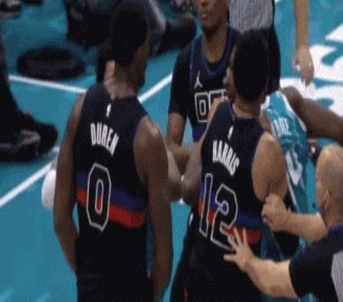 活塞的杜伦和迪亚巴特在篮下起了点冲突
