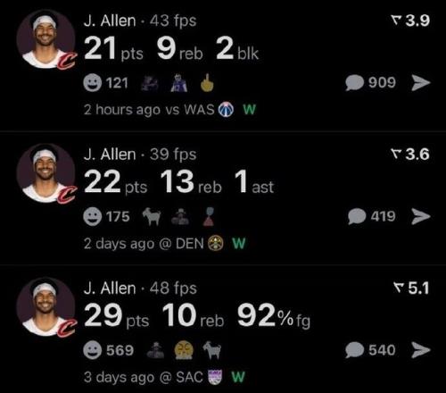 有登哥的三场比赛,阿伦分别得到了29分、22分、21分。