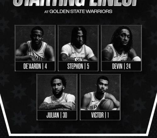 首发阵容方面,勇士队这边,库里(膝伤)缺席至全明星后,巴特勒赛季报销,刚引进的波尔津吉斯仍在恢复期,塞斯·库里、克赖尔也不打,科尔教练排出的首发五人组为:斯潘塞、梅尔顿、桑托斯、穆迪、追梦-格林;马刺这边,卡斯尔骨盆挫伤依旧带伤出战,首发阵容则为:卡斯尔、福克斯、瓦塞尔、尚帕尼、文班亚马。
