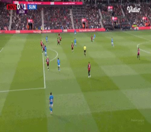 第63分钟,扳平比分,埃万尼尔松肩部进球,伯恩茅斯1-1桑德兰