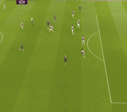 第55分钟,帕尔默策动进攻,詹姆斯的传中造成马丁内斯的脱手,帕尔默跟上,一蹴而就。