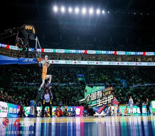 第三个出场的是预赛两扣拿到100分满分的辽宁本钢球员俞泽辰。俞泽辰和队友赵继伟配合,赵继伟将球抛到篮板侧沿反弹后,俞泽辰接球背扣,这一扣创意拉满,也得到了50分满分。俞泽辰的第二轮扣篮压力很大,因为他只有扣出50分才能追平张鼎岩的100分,把比赛拖入加赛。他仍然是和赵继伟配合,赵继伟将球抛到篮板上反弹后,俞泽辰接球转身360度双手扣篮,这一扣不论从配合的难度,还是扣篮的完成度都堪称完美,最终俞泽辰得到50分满分,比赛进入拖入加赛环节。