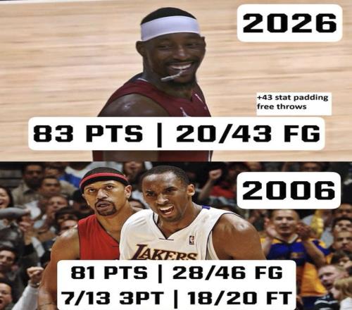 可以看到,在本场比赛最后阶段,热火全队犯规抢回合,奇才则为了不让阿德巴约得分对热火其他球员犯规,比赛的垃圾时间进入了点球大战,热火全队罚了59球,NBA裁判也是真给阿德巴约帮忙,为了破纪录而破纪录,阿德巴约明显是在刷分。科比的81分是纯粹的个人英雄主义时刻,而阿德巴约的83分则更像是刷数据,像是一场闹剧,这是丑陋的比赛。