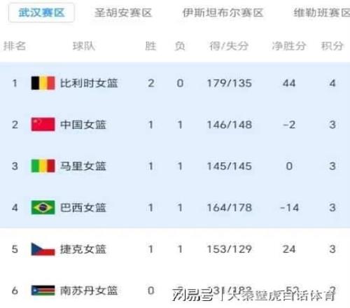 15分惨败比利时女篮之后,武汉赛区的最新排名也已经出炉。