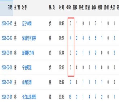 最近5场常规赛,广东仅1胜4负,期间徐杰有3场得分挂0,第21轮对阵宁波,徐杰2中0拿到0分(伤退离场),二阶段第1场面对新疆,徐杰6中0得0分,上一轮面对深圳,徐杰表现稍微有所起色,2中1拿到4分6板6助,本以为徐杰找回了状态,没想到辽粤大战又拉胯了。