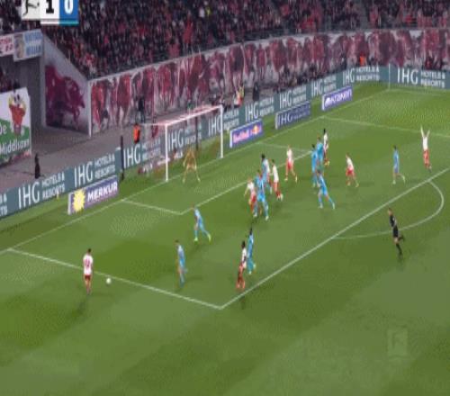 第17分钟,格鲁达门前补射破门先拔头筹,莱比锡1-0霍芬海姆
