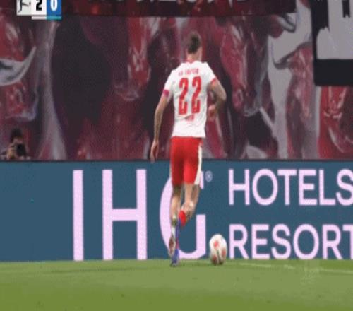 第44分钟,迪奥曼德低传后点,格鲁达推射破门完成双响,莱比锡4-0
