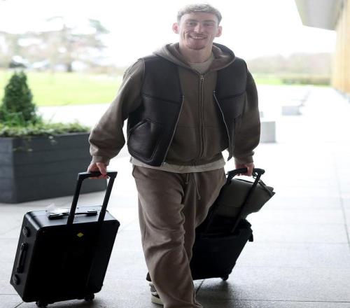 抵达基地的球员们大都神情轻松,拉什福德身穿英格兰队最新赛前热身球衣,勒温则选择了一身极为休闲的装扮,看起来仿佛是要出门去旅行。福登神态轻松,面对镜头微微一笑。