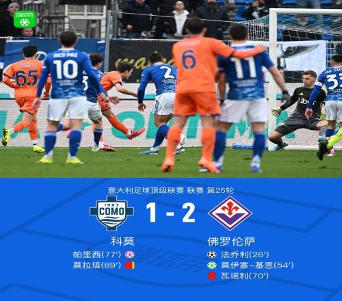 意甲法乔利、基恩破门莫拉塔染红十人科莫12佛罗伦萨