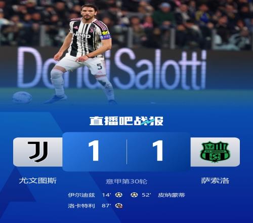尤文图斯与萨索洛战平无缘三连胜伊尔迪兹进球洛卡特利罚失点球_意甲直播