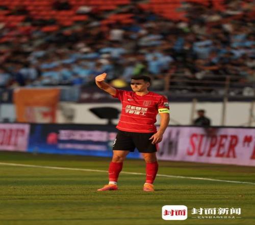 2023年5月23日,成都蓉城主场力克劲敌上海申花,周定洋在比赛中激情怒吼。他的铁血精神也潜移默化地影响了球队的气质。