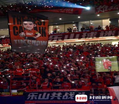每次主场比赛后的谢场环节,周定洋总是那个挥舞“雄起”大旗的人。