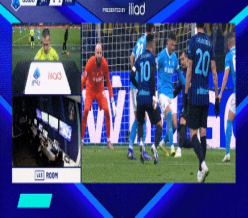 第68分钟,出现最大争议。姆希塔良在禁区内传球后,被那不勒斯防守球员踩到脚面倒地。主裁判经VAR提示后改判点球。对此判罚极度不满的那不勒斯主帅孔蒂,因持续向裁判组抗议被直接出示红牌罚离教练席。