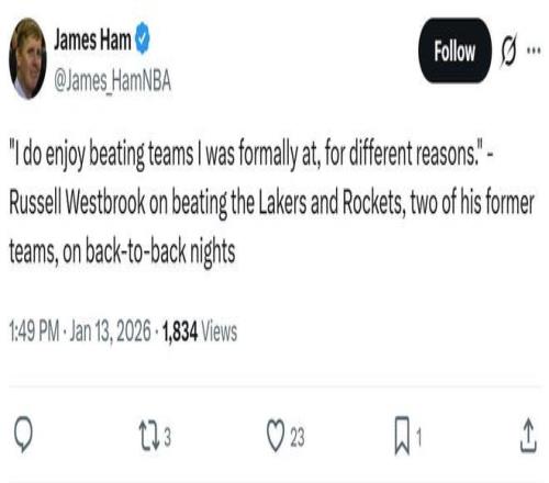 而这一切恰恰是从威少昔日加盟湖人队闹得不欢而散,彻底打丢巨星身价说起,也让他在本场手刃旧主后的一番发声变得耐人寻味起来。
