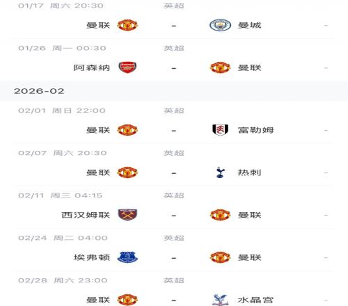 曼联未来赛程: