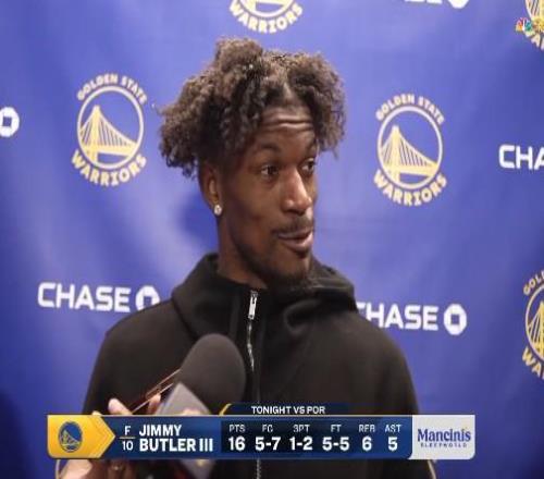 北京时间1月14日,在勇士击败开拓者赛后,勇士前锋吉米-巴特勒接受了媒体采访,他谈到了自己对勇士队目前情况的看法。